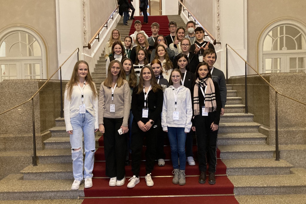 Am 13.12.2023 besuchten die Schüler*innen des SWG-Zweigs der Jahrgangsstufe 10 den Landtag in München. Nach der langen Busfahrt wurden die Schüle*innen zunächst im Landtag offiziell von einem Mitarbeiter des Landtagsamts begrüßt und bekamen eine kurze Einführung zum Ablauf des weiteren Tages. Im Anschluss daran konnten sie sich erstmal mit Schnitzeln und Pommes stärken – jedoch…