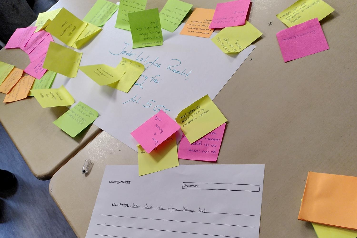 Das Grundgesetz – viele verbinden mit diesem Wort wohl hauptsächlich langatmige TV-Beiträge und trockene Gesetzestexte. Dass das Grundgesetz aber eigentlich nicht nur spannend, sondern auch in unserem Alltag immer wieder relevant ist, durften die Schüler der 10. Klassen erfahren. Im Rahmen des GrundgeSÄTZE-Workshops haben die Schüler mithilfe unzähliger Haftnotizen ihre Assoziationen zu verschiedenen Grundrechten gesammelt, überlegt,…
