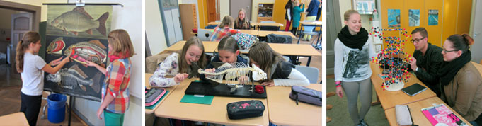 So lernen die Kinder der 5. Klassen dieses für sie neue Fach kennen. Die Schüler erwerben auf vielfältige Weise Kenntnisse über das System der Lebewesen, Evolution, Genetik, Zellbiologie, Ökologie und Physiologie des menschlichen Körpers. Verschiedene offene Unterrichtsformen, selbstständiges Experimentieren und Recherchieren prägen den Biologieunterricht, unterstützt durch Unterrichtsgänge und Exkursionen, verschiedene Projekte, Teilnahmen an Wettbewerben und Einladungen von Experten.