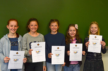 Für erfolgreiche Teilnahme bei der ersten Runde des bayernweiten Schülerwettbewerbs „Experimente antworten“ wurden 13 Schülerinnen und Schüler der 5. Klassen ausgezeichnet und erhielten Urkunden aus der Hand von der Schulleiterin Frau Graf.