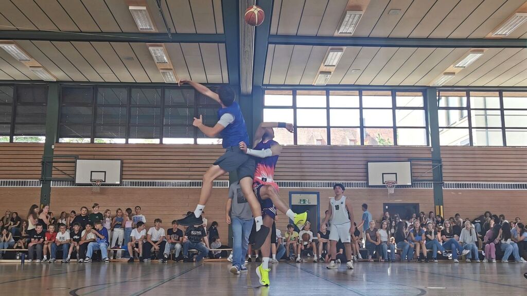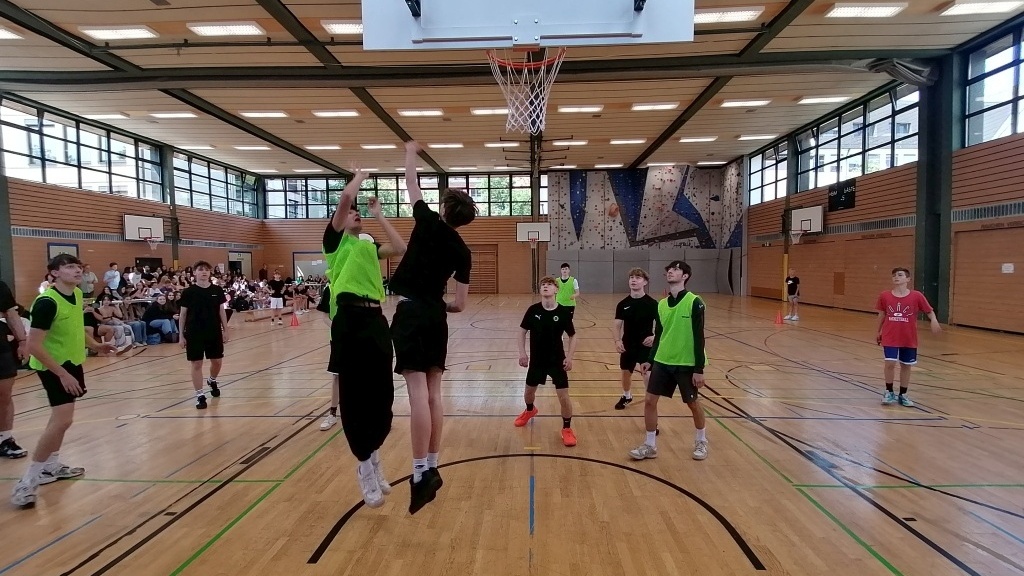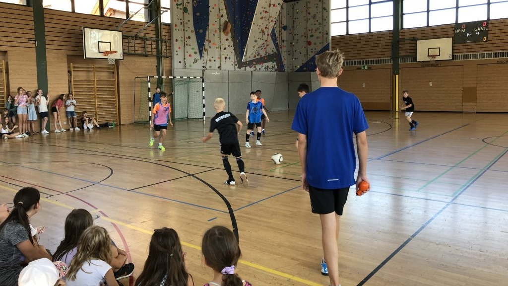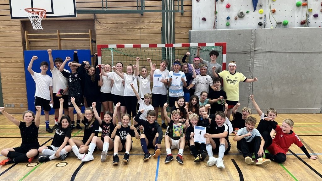 Beim Fußballturnier der 5. bis 7. Klassen am RWG ging’s ordentlich zur Sache – mit lautstarker Unterstützung von den Tribünen. Glückwunsch an die Bananenbrotbande, die sich souverän den Sieg geholt hat! Ein großer Dank geht an die SMV für die Organisation – das war ein Volltreffer!